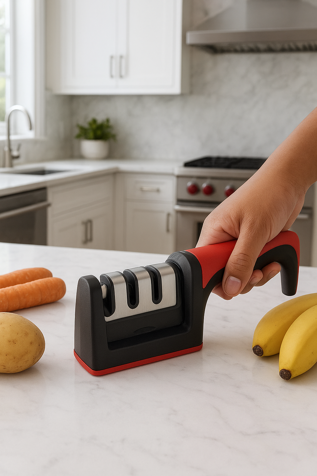 Con nuestro Afilador Profesional de 3 Etapas tendrás cuchillos afilados como nuevos de forma rápida, segura y sin esfuerzo. ✨ Beneficios que enamoran: